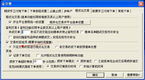 2,可以使用金字塔的功能设置 程序化交易只在交易时间段内交易选项(注本地时间要精确)