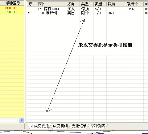 希望在软件里委托记录单中“委托类型”栏显示的是客户原委托的类型(不知什么原因所有委托类型都记录成“限价”),而未成交委托单中显示的就很准确。