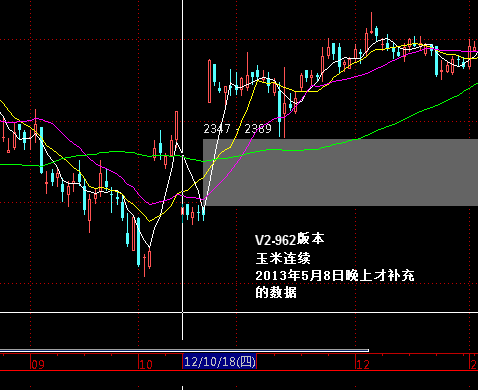 我家里的电脑2995版本,我做了三次尝试:第一次是删除data文件夹中的DQ文件夹(软件未打开),然后登陆后补充DQ数据(日线);第二次是在工具→数据管理器中将DQ日线数据完全删除,然后再补充;第三次是在数据管理器中将DQ日线数据完全删除,然后换了登陆服务器再补充数据,以上三种操作后的玉米连续都是上述第二张图。