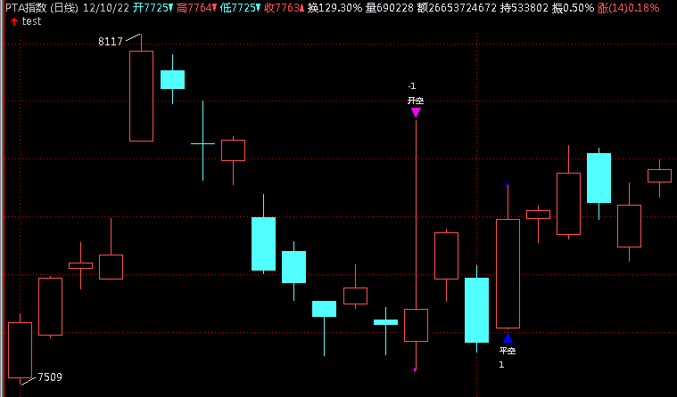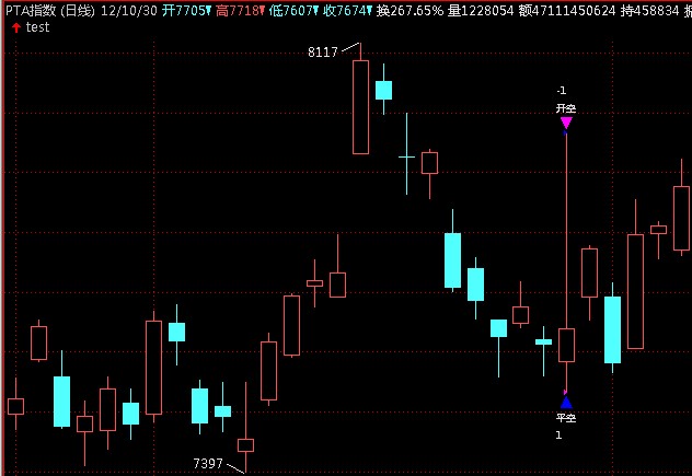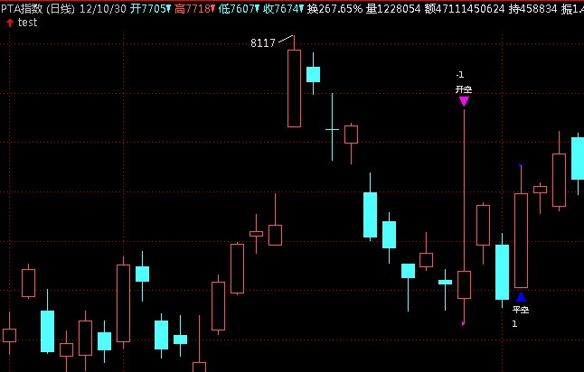 把开仓代码写到平仓前面就有了,就是我贴图的那根k线, pta指数日线,120927,