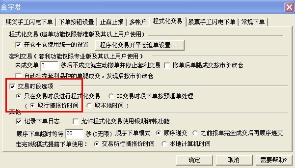 我勾选了‘只在交易时间段交易’ 软件默认是勾选的!