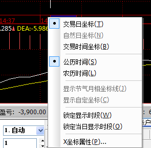 1,打开对应K线图,X坐标右键菜单-锁定显示时段
