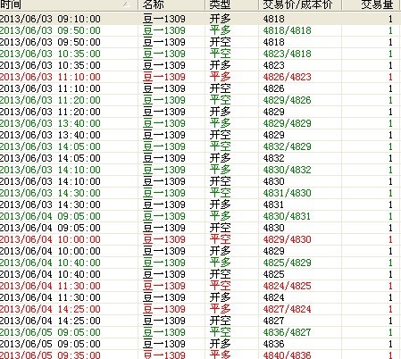 同样是采用豆一1309,五分钟,20130601-20130715时间段,全是采用K线走完下单