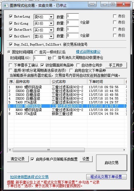 我没有设置任何东西,我原来自动交易是用30分钟K线,设置K线提前8秒走完委托交易,但是今天在2:00钟走完发现图表有信号,但是没有委托,是用实盘的