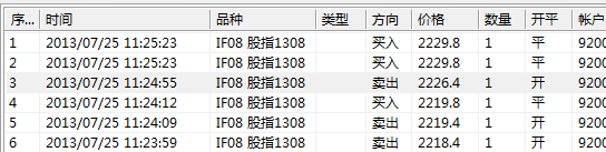 2013-07-25 11:24:55.377    【回报】92001687 : IF1308 - 已成交 1 价格:2226.4 开 卖