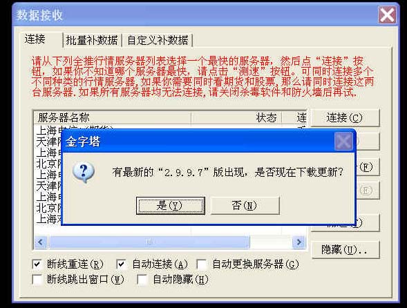 问题点描述1:03年8月1日登陆金字塔出现如图1的更新提示,这对于人工看盘没有影响,但对无人值守自动