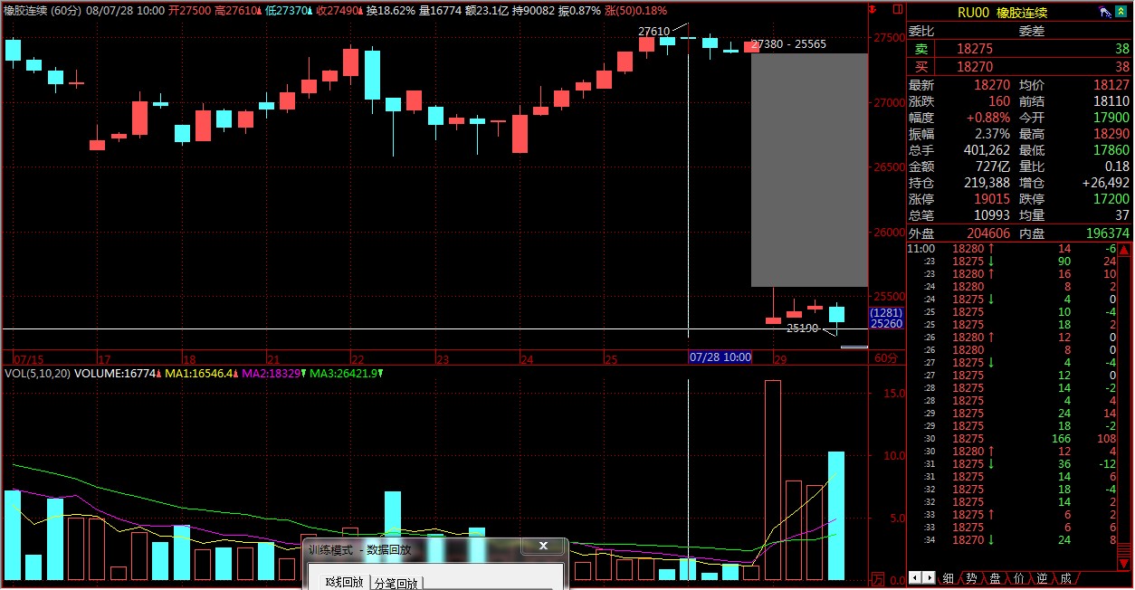 2,我复盘最近几年橡胶数据的时候,经常小时线和日线对不上,比如说2008年7月28日至29日,有一个很大的  跳 空缺口,但是日线上这个缺口却没有是什么原因呢?
