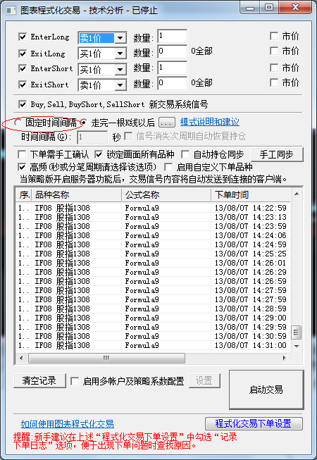 方法二:在您的交易策略中写入止盈止损代码,但此时您的图表运行模式必须选择固定时间间隔,才能实现实时止损。