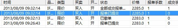 2013-08-09 09:32:14.077    【回报】600985 : IF1308 - 已报单 1 价格:2285.0 开 买