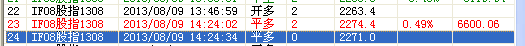 2013-08-09 14:24:02.971    【回报】   : IF1308 - 已成交 1 价格:2274.4 平 卖