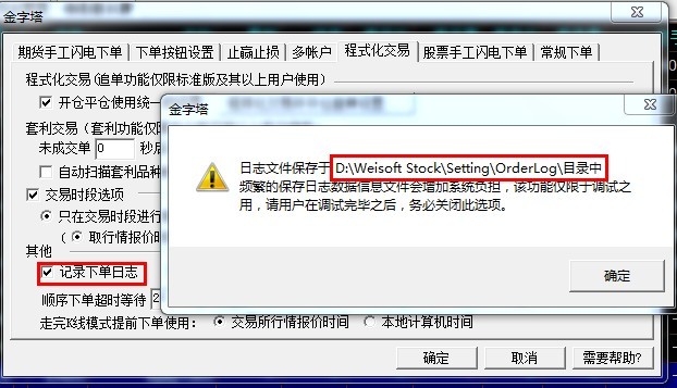 您好, 菜单交易——下单设置——程序化交易——下单日志