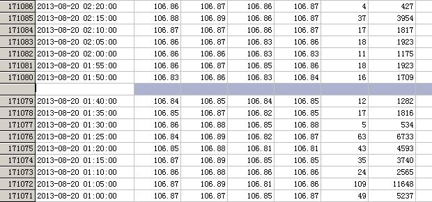 5分钟数据中,01:45:00的一条数据丢了