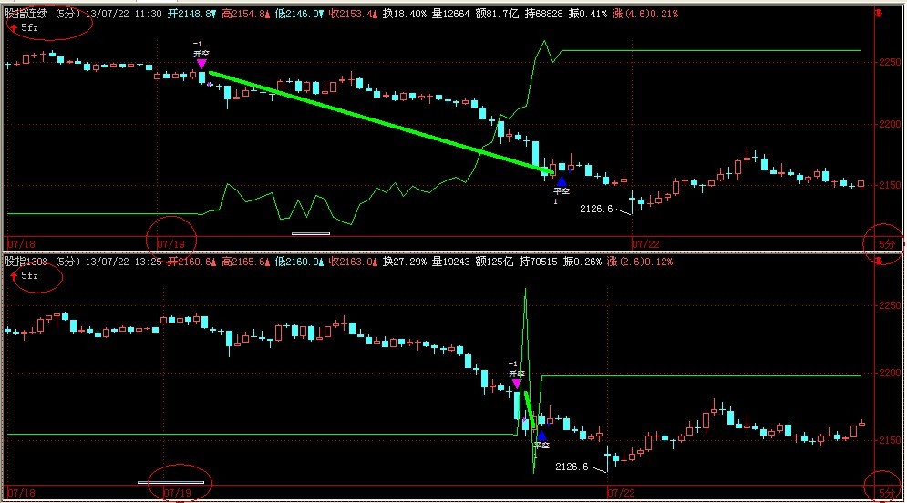 7.19日这一天,同一个模型,为什么在股指连续上的开仓点位和1308合约的开仓点位不一样的呢?