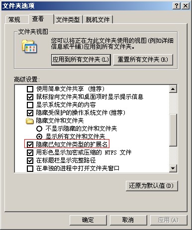 打开 我的电脑 ---> 工具 ---->文件夹选项---->查看---->如图:隐藏已知文件的扩展名 那个钩钩去掉就行。exe是系统的执行文件的后缀扩展名。 txt是文档 JPG,GIF都是图片。这个是电脑的常识