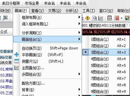 您好,您可以按AIT+1 只显示一个k线主图 调这个主图的背景后 在重新调下面组合,画面菜单-》画面组合-》3图组合