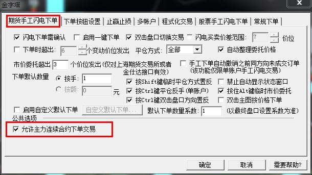 勾选 下单设置 允许主力连续合约交易,这样你下连续合约的时候,就能下单到主力合约了。