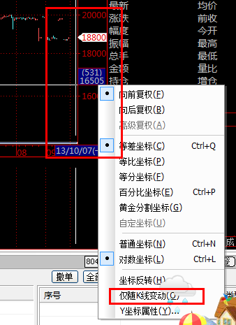 或者在K线图Y左边右键菜单选择仅随K线变动,