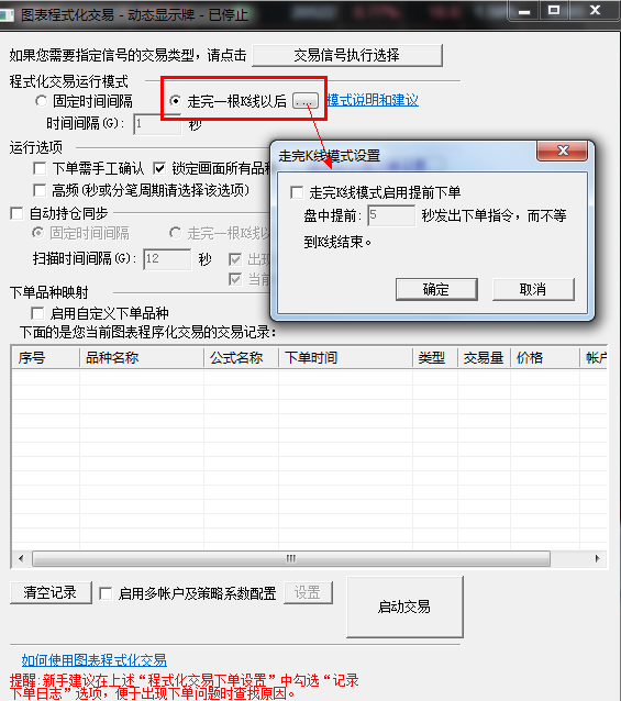 如果您要走完K线且提前下单的话可以使用图表程序化的功能