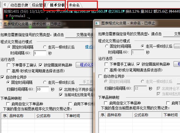 一个框架加载一个公式,对应启动一个图表交易。