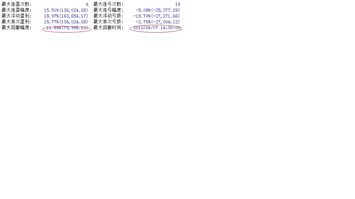 简易报告里最大回撤幅度后面的资金指的是最大回撤幅度时的回撤资金,而专业报告中指的是最大回撤资金并不一定是最大回撤幅度。