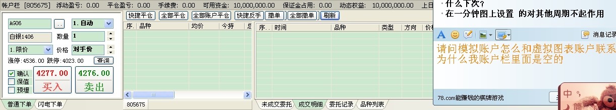 请问 模拟账户怎么和虚拟图表账户联系啊 为什么我账户栏里面是空的图表启动哪里有交易?