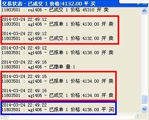 2014-03-24 22:49:13.234    【回报】11803501 : ag1406 - 已报单 1 价格:4130.00 开 卖