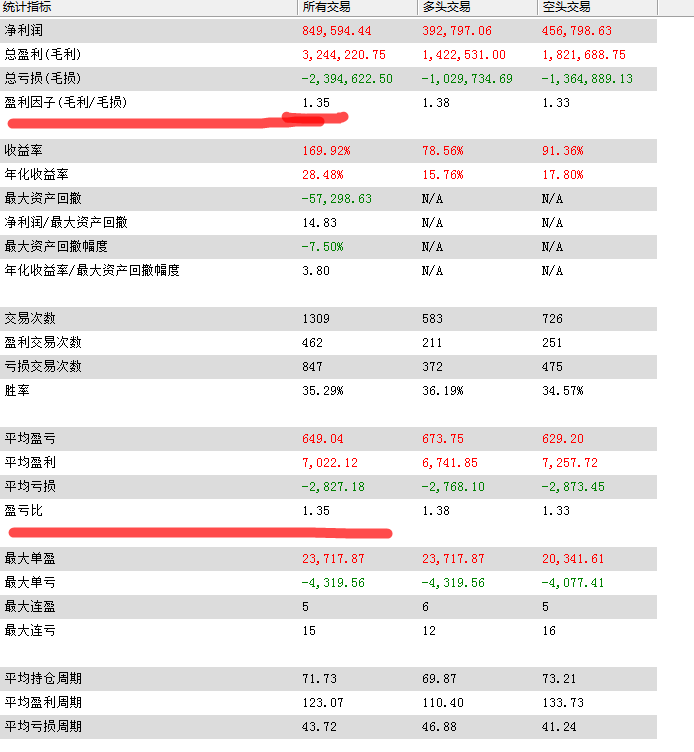 那是盈利因子,搞两个重复的值有什么意思呢?盈亏比也是就风报比,不是总的.