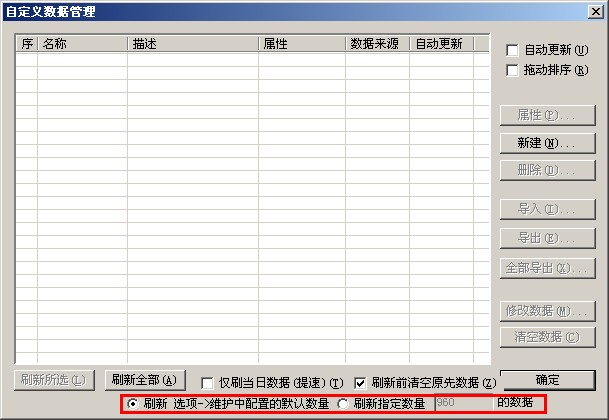 又有一个问题,刷新前清空原先数据这个一般是选,还不是不选,清空是是清空所有数据,还是只清空刷新指定数量的数据。