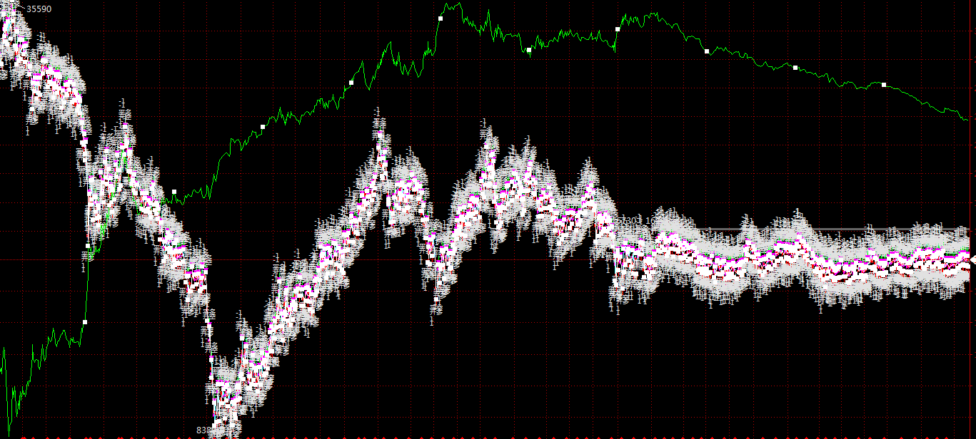 同样是橡胶,这是RU05,和连续图不同的是数据不一致一直存在。其它品种亦然。