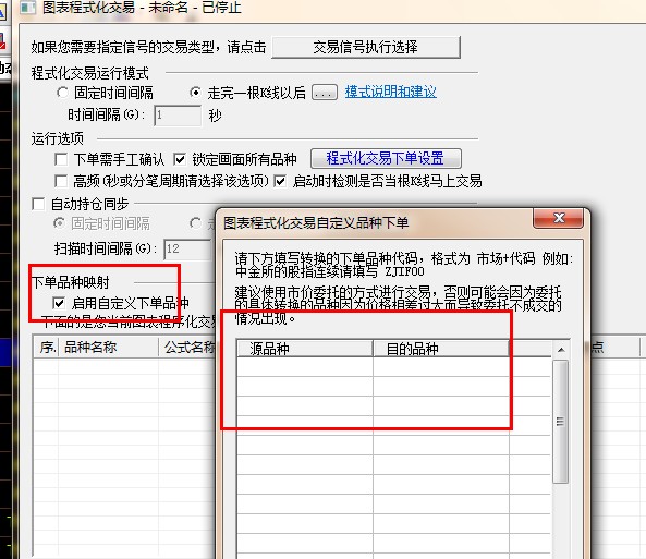 交易-》图表程式化交易 -》下单品种映射