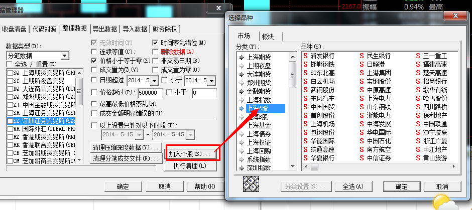 可否通过“数据管理器”里面的“整理数据” 删除其他品种,如基金、债券、B股等等的分笔数据(仅仅留下A股的分笔数据)?