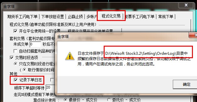 交易菜单-》下单设置-》程式化交易 记录下单日志之前打过勾才有记录