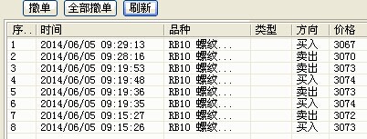 2014-06-05 11:27:31.281    【回报】15000020 : rb1410 - 已报单 5 价格:3037 开 卖