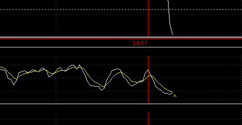 如图, 白色虚线是最新价格线, 可以看到分时的线没有及时绘制, 等2,3秒才有,