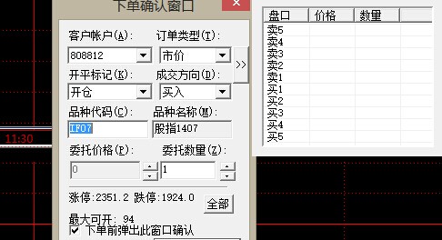 2,对应每个下单窗口都有个下单确认按键,如不用确认请去掉此√