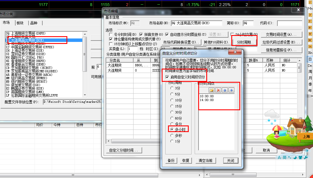 这里使用的是金字塔时间进行切分, 大连市场的时区是12,差4个小时, 也就是北京时间+4小时即可,你按照这个逻辑自行这里进行时段切分即可