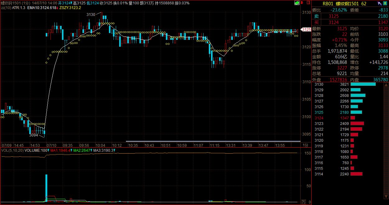不知道怎么回事,软件显示总是断断续续的,中间经常莫名其妙的短了一截,看数据里面一分钟都全的,但是有一段就是不显示。还有1分钟图里的成交量怎么也显示不了,是不是坐标单位太大了,怎么能调一下?