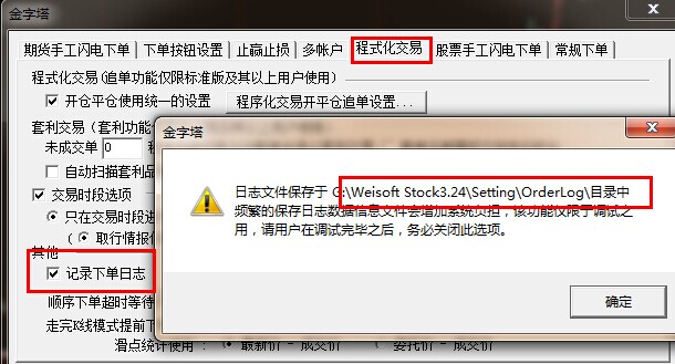 交易-》下单设置-》程序化交易 勾选下单日志可以保存交易记录