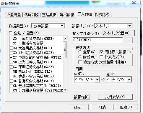 我的txt文件内容是5列,开 高 低 收 量,但是没有时间列。我想导入的是2012/1/4~2013/6/27时间段的数据