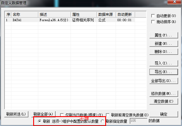 您这张图中用红字写的'去掉'两个字没明白怎么去掉,这似乎和右边的刷新制定数量的数据是互斥选项啊