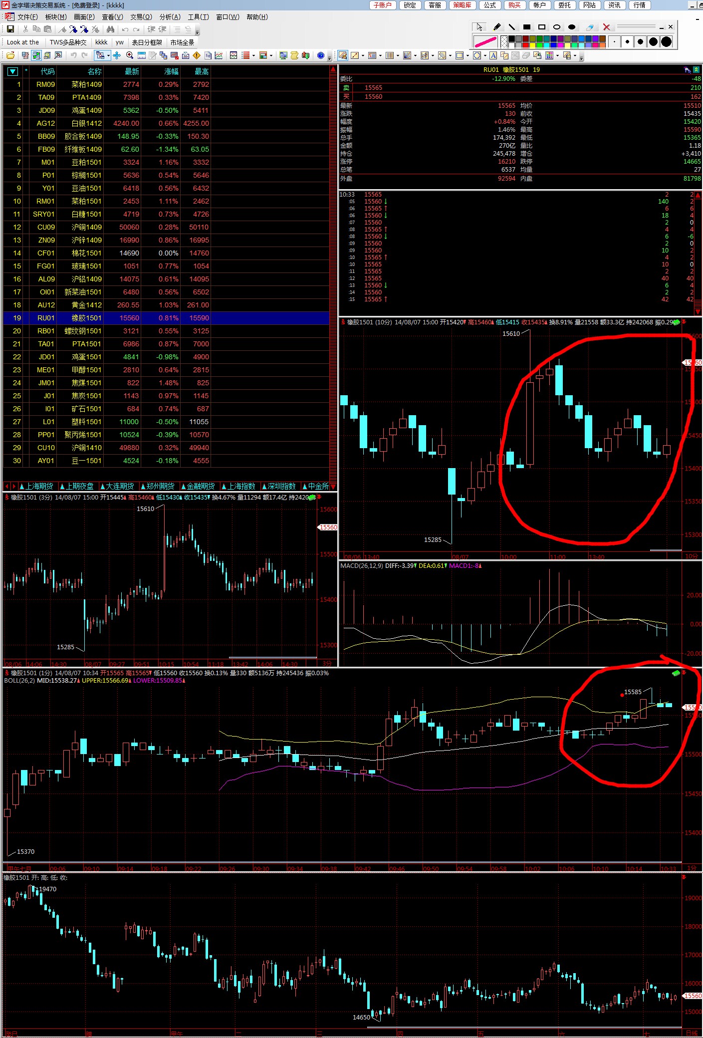如图 上面的窗口 不对 下面的窗口K线对的