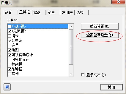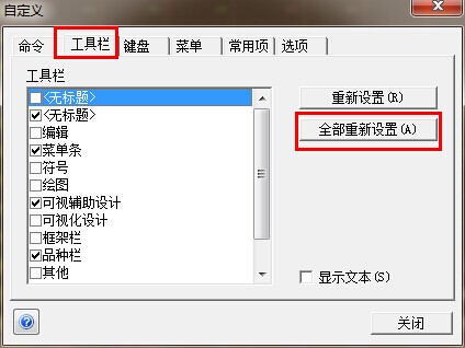 在标题栏,右键--自定义--工具栏--全部重新设置