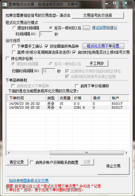 1,图表程序化交易对应的手数是先用虚拟资金进行报单,然后实际账户跟着走