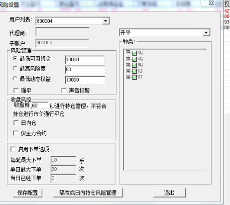 点击风险管理左下角的保存配置 然后在用子账户下单