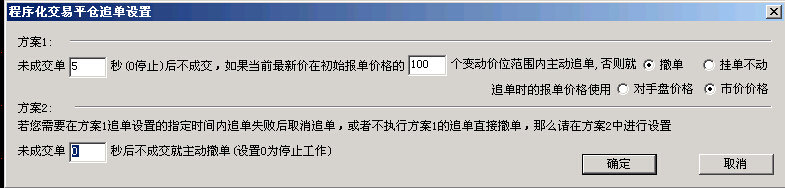 上面是追单设置,所谓追单是报单成功,但由于行情或报单价格导致单子无法成交,从而追单