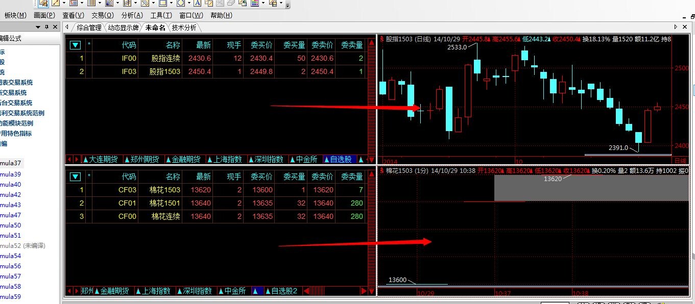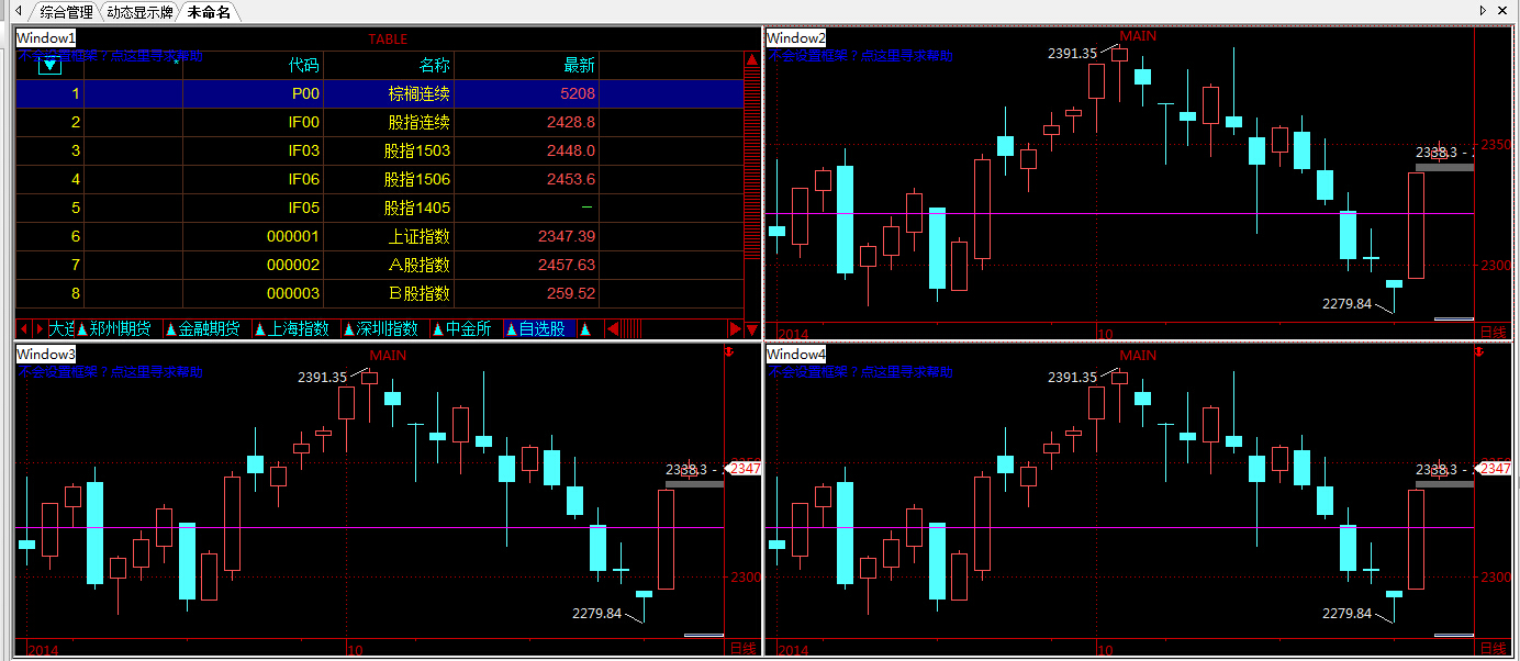 多框架里插入一个表,将之设为主图,然后其他的k线设为副图关联window1主图的这张表。另外联动分组把这几个图都放到一起