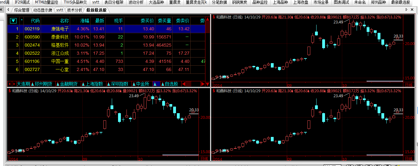 可以3个自选股对应3个k线主图,一一对应可以分别切换自选股里的品种