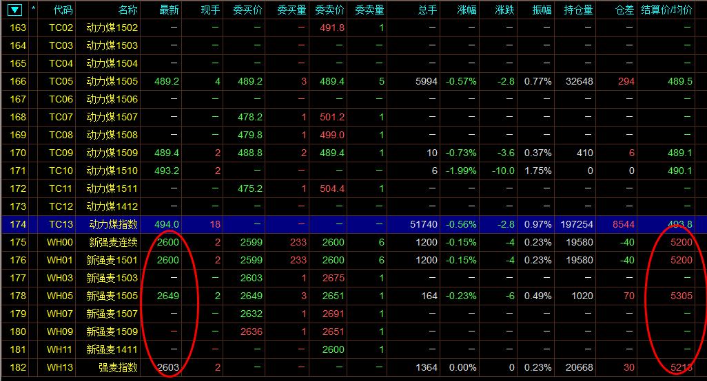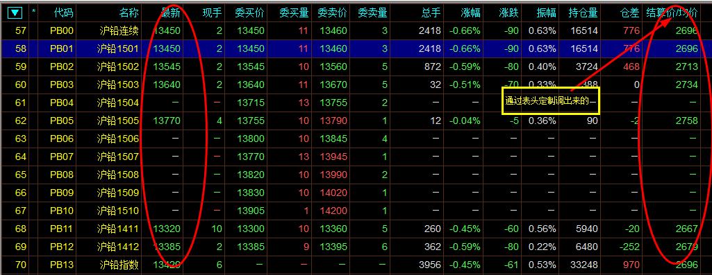 沪铅、新强麦。均价与最新价对比,应属于错误。均价/结算价是通过定制表头的“行情”->“均价”得到的。