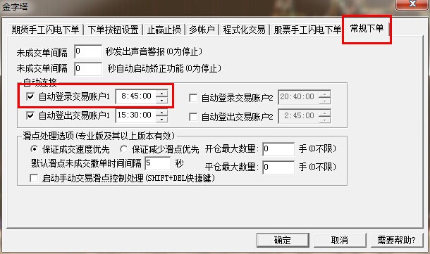 交易-》下单设置-》常规下单