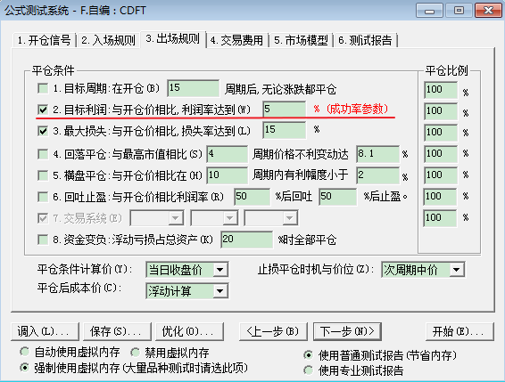 注意:成功率的达标百分比线可以在“出场规则”》“目标利润”中设置您所需要的数值。"